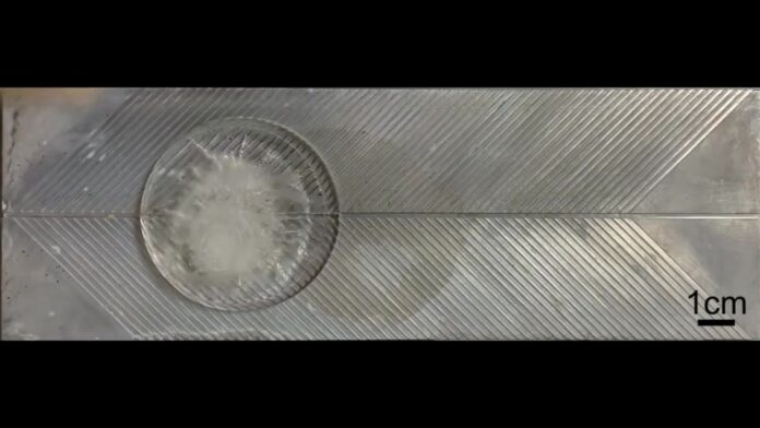 Перший прототип поверхні, розроблений з кутовими канавками, що нагадують візерунок у вигляді ялинки, фактично дозволяв льоду рухатися. Тала вода, що стікала по цих жолобках, штовхала вперед лід, що залишився. Але справжня магія сталася, коли вчені покрили поверхню водонепроникним спреєм.